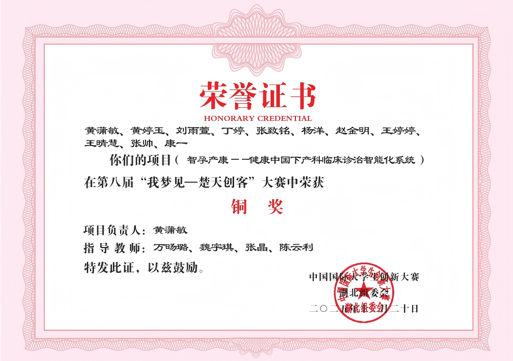 康复治疗学2201班黄浦敏、黄婷玉等同学在第八届“我梦见-楚天创客”大赛获得省部级铜奖