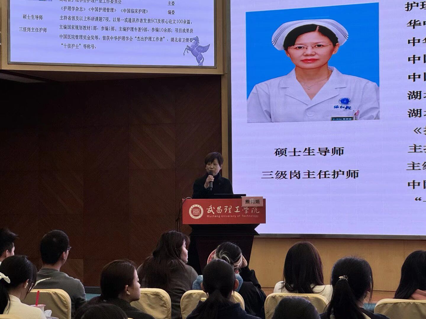 (通讯员 彭雅泽 报道 陈慧玲 摄影)2025年11月24日下午14:30在武昌理工学院图书馆六楼报告厅,开展了由华中科技大学同济医学院附属协和医院熊莉娟教授主讲的《优质护理与智慧护理:驱动现代护理发展的双引擎》专题讲座,健康与护理学院院长张红菱、理论教学副院长占定华、实践教学副院长吴海波与25级200余名新生共同聆听了此次讲座。