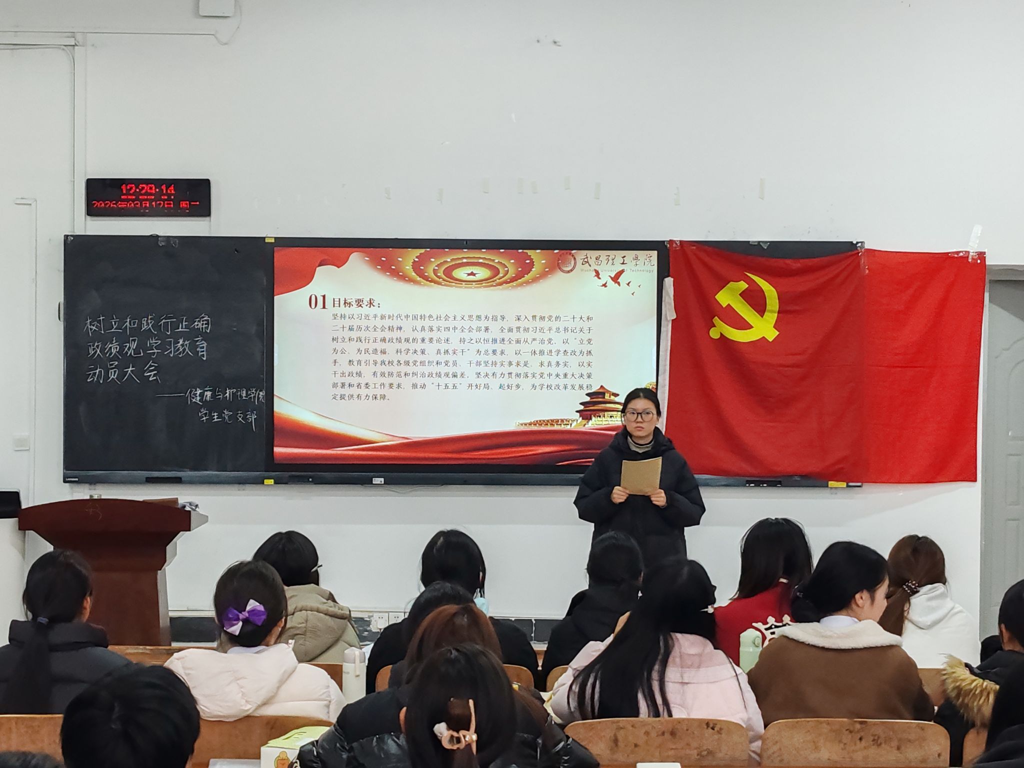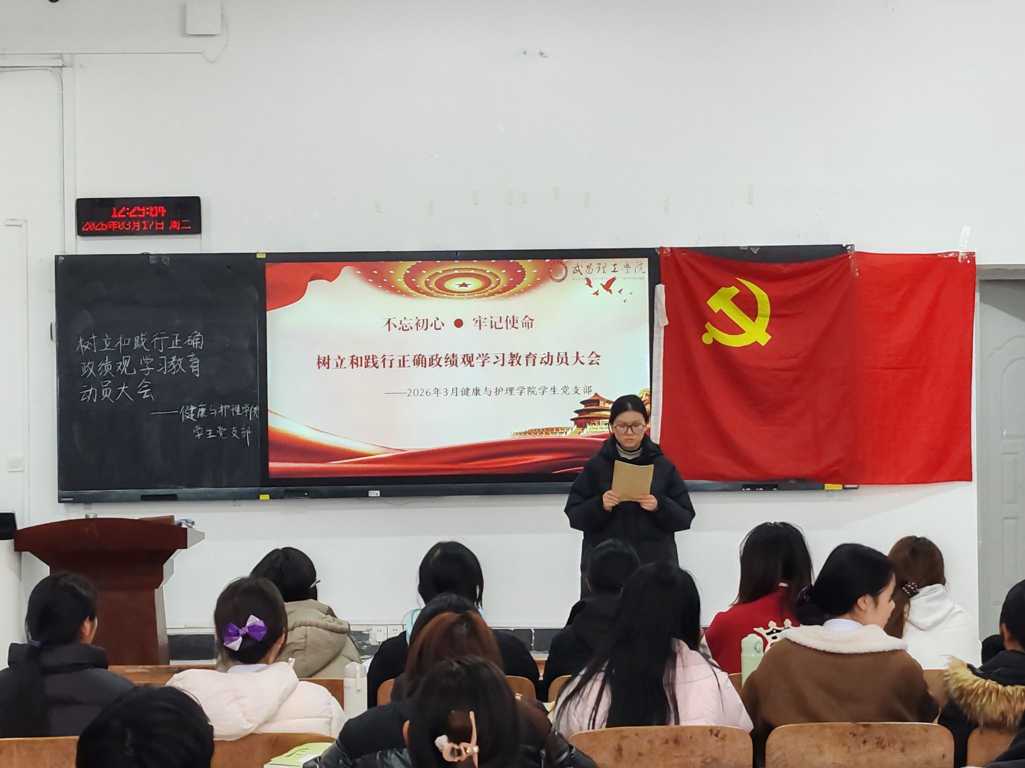 2026年3月17日,武昌理工学院健康与护理学院学生党支部召开树立和践行正确政绩观学习教育动员大会,会议由健康与护理学院学生党支部副书记余若瑄主持,支部全体学生党员参会。