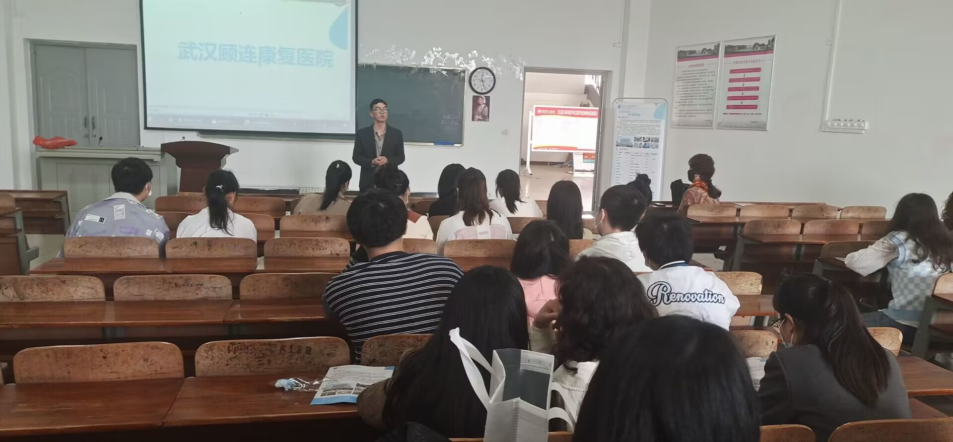 招聘会上,招聘单位通过播放宣传片、PPT展示、面对面交流等方式向同学们介绍公司的概况、职业发展方向、人员需求以及选择该单位的理由等,武汉顾连康复医院的负责人还在现场进行了笔试,表示通过的学生就可以去参加下一轮的面试。此次招聘会使毕业生们获得了一定的面试技巧,同时也使在校的毕业生们对于现在的就业形势的严峻有了更深的了解。
