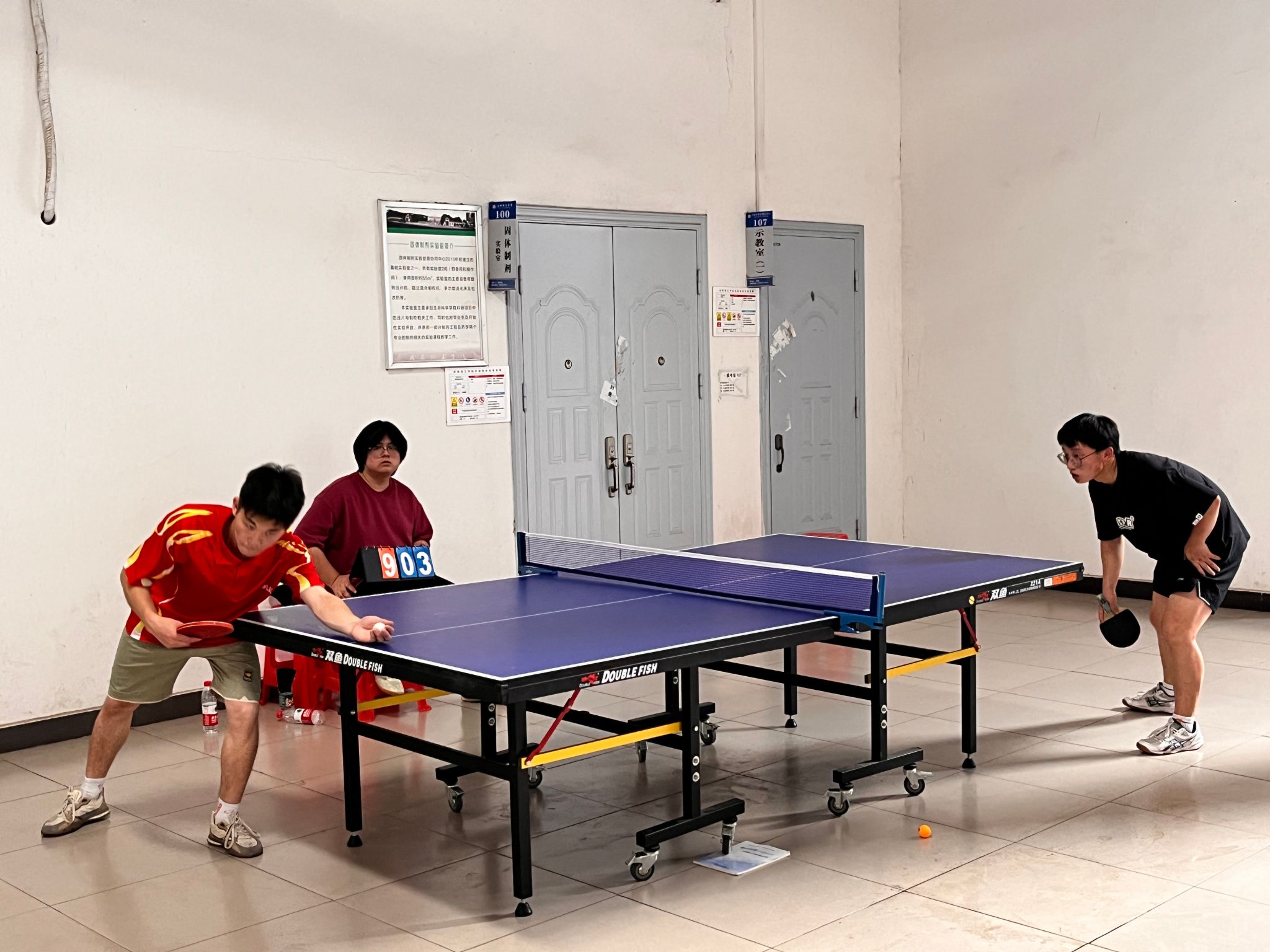 5月25日中午12:00,男女子乒乓球单打比赛正式开始。本次单打比赛采用单循环淘汰赛,三局两胜制的规则。参赛运动员势均力敌,比赛十分激烈,在直拍、横拍、扣球、旋转球、弧线球的精彩呈现过程中,不时传出观众热烈的喝彩声,兴奋的“好球”声不断。最终,历经近3个小时激战,比赛暂时落下帷幕。