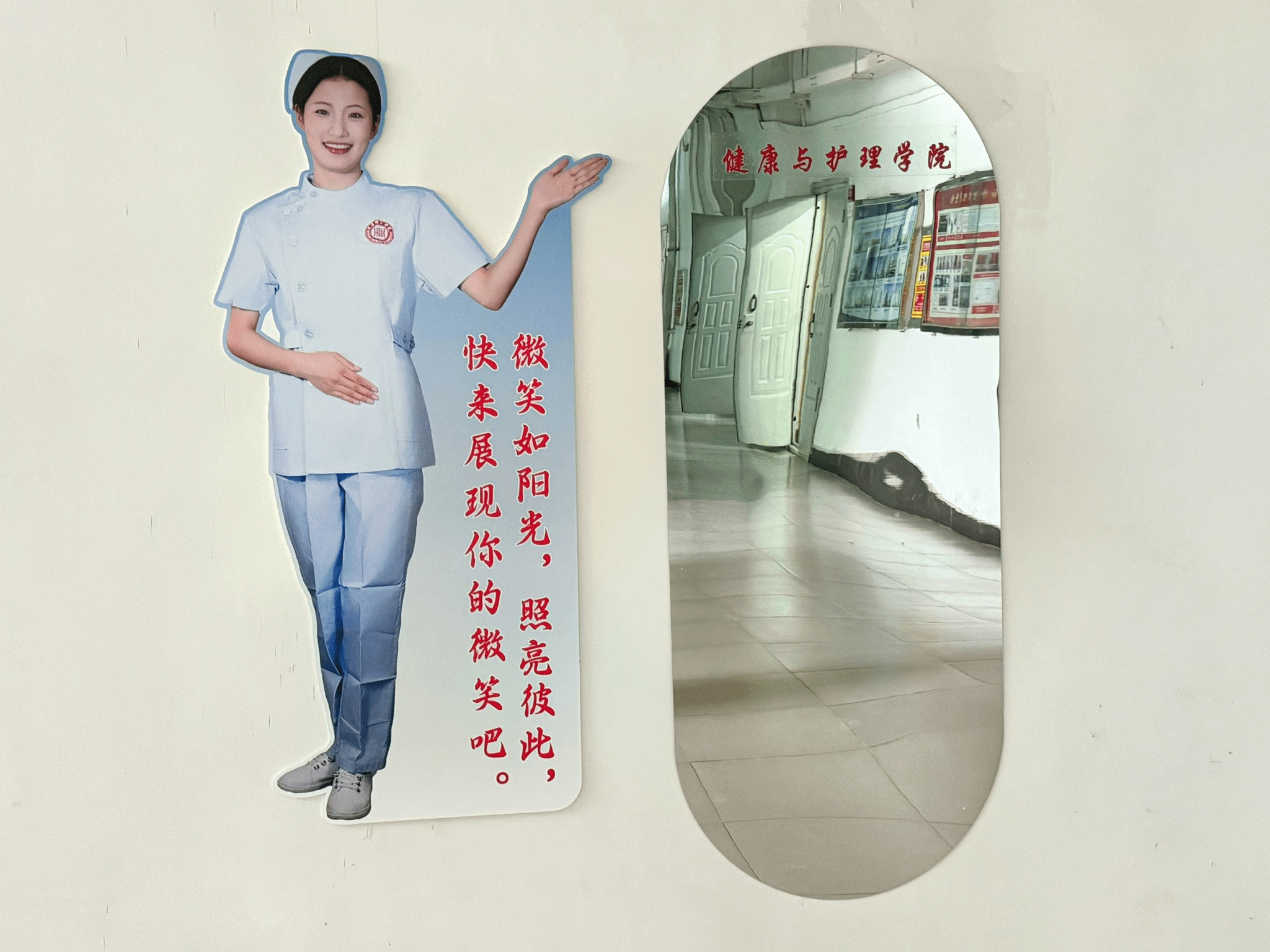 学院还设置微笑形象整理点,学生形象天使引导同学们在镜子前整理容貌并时刻保持微笑。这一举措让微笑从内心自觉转化为外在行动,强化了同学们对微笑礼仪的重视与实践。
