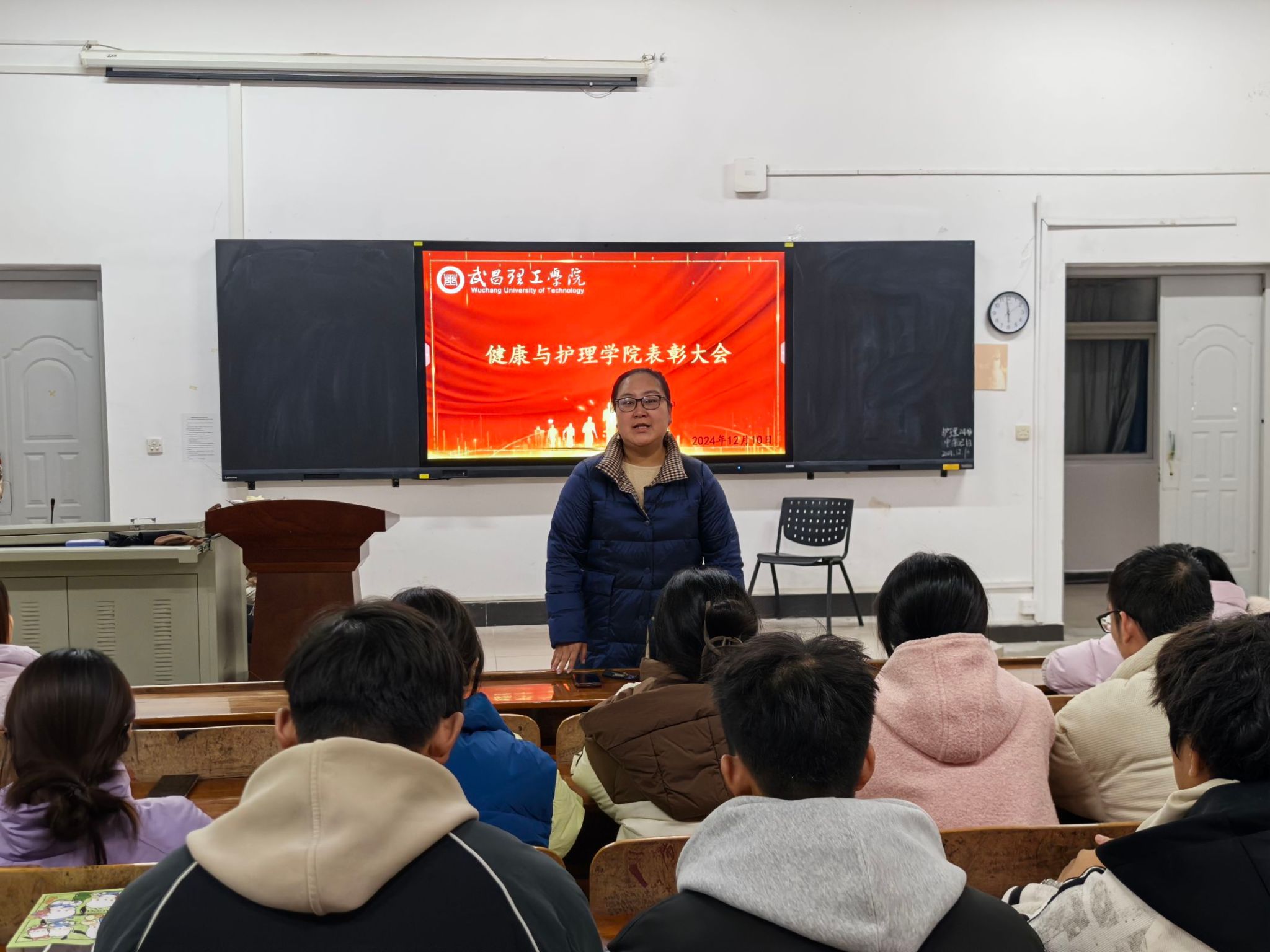 (通讯员 董怡雪 报道 朱宇明 杨鸿铭 潘杨静薇 摄影)为表彰先进,树立榜样,进一步激发全院师生的积极性和创造力,武昌理工学院健康与护理学院于2024年12月10日17时40分在健康与护理学院102教室举行了隆重的表彰仪式。此次表彰涵盖了运动会、部门工作以及大学生职业规划大赛中表现卓越的个人与团体,全面展示了该院学子的多才多艺与拼搏精神。