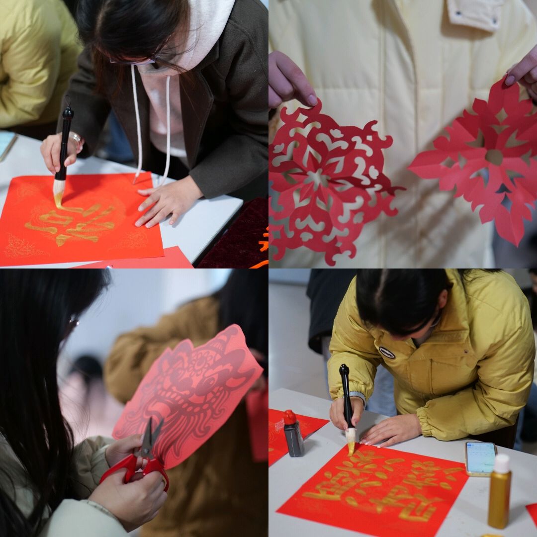 活动前期,组织者精心筹备,不仅购买了包含各种传统样式的剪窗花材料,还在学校张贴海报、在微博和微信公众号发布活动预告,吸引了众多师生的关注。活动当天,学生会成员与社团成员早早来到文化长廊,迅速完成活动场地的布置。在场地两侧的剪纸区域,摆放好了用于剪窗花的剪刀、各类纸张等工具,还设置了循环播放教学视频的设备,为同学们提供了良好的创作条件。活动中,三位擅长剪纸的同学现场示范教学,从简单的纸折叠方法到复杂图案的裁剪技巧,一步步耐心地引导同学们创作。现场氛围热烈,同学们纷纷围聚过来,认真学习。大家从最初的小心翼翼,到逐渐熟练地运用剪刀,创作出一个个精美的窗花作品。有的同学剪出了栩栩如生的动物图案,有的则创作了寓意吉祥的花卉造型,每一个作品都充满了创意和对新年的美好祝福。