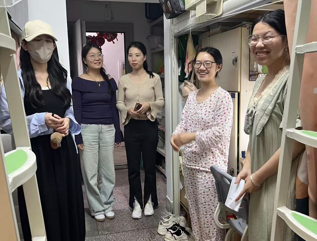 在寝室里,领导和导师们与同学们亲切交流,仔细询问大家的学习和生活状况。党总支书记张晶特别关注学生的心理状态和未来规划,她语重心长地说:“当下是职业规划的关键期,大家既要扎实专业基础,也要提前了解就业市场动向。健康与护理学院会全力为大家搭建实践平台,提供精准支持。”
