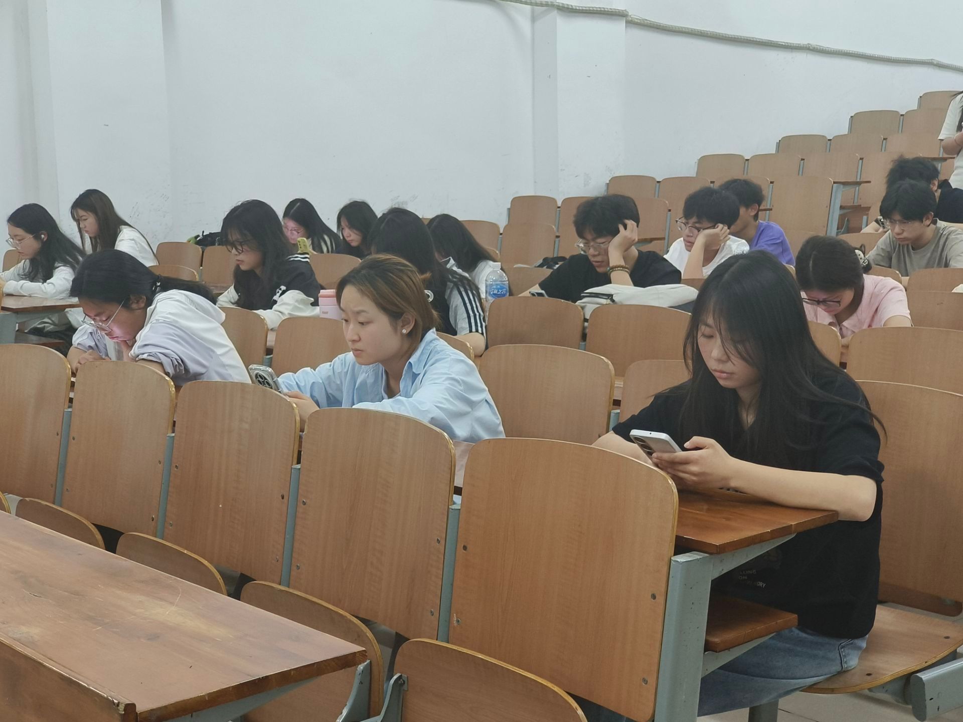 比赛前夕,学院学习部干事们早已抵达现场,有条不紊地布置考场。他们仔细调试设备,确保每一台电脑都能流畅运行;反复检查桌椅摆放,力求为参赛者营造最舒适的答题环境;张贴指示牌与考试须知,让一切井然有序。参赛同学们陆续入场,带着紧张又期待的心情,根据指引找到自己的座位。他们迅速调整状态,认真阅读考试须知,为即将到来的竞赛做最后的准备。