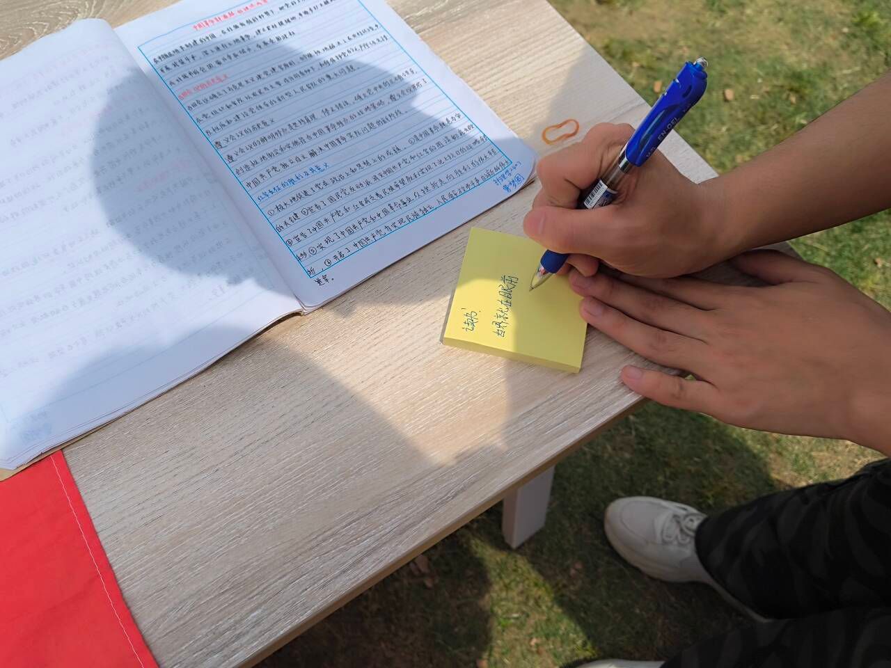 展览当日,现场热闹非凡。为鼓励同学们积极参与互动,特别设置了“分享赢好礼”环节。展览区域旁,精美的便签纸和马克笔整齐摆放。同学们在认真翻阅优秀笔记后,纷纷拿起笔,将自己的参观感受、学习启发等内容书写下来,粘贴到专门的互动展览板上。不一会儿,一面充满创意和交流的展示墙便逐渐成型。大家在分享中相互学习、汲取长处,共同成长。完成分享粘贴的参观者,还领取到了古风捏捏乐、平面画文字扇等精心准备的活动奖品,现场洋溢着欢乐与收获的氛围。