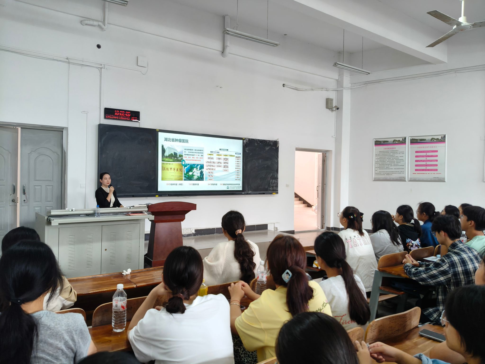 分享会上,刘奕锐校友以自身从母校学子到行业精英的成长轨迹为主线,结合在湖北省肿瘤医院多年的深耕实践,围绕专业积淀、职业规划、临床素养锻造三大核心维度展开深度分享 。她动情回顾在健康与护理学院的求学岁月,再三感恩母校系统化的培养为其职业道路奠定了稳固基石。她着重强调,护理专业学生在校期间的核心任务是筑牢理论根基与锤炼实践技能,“每一次实验课的严谨操作、每一次见习的用心积累,都是未来在临床岗位上站稳脚跟、从容应对挑战的关键,丝毫不能松懈 。”