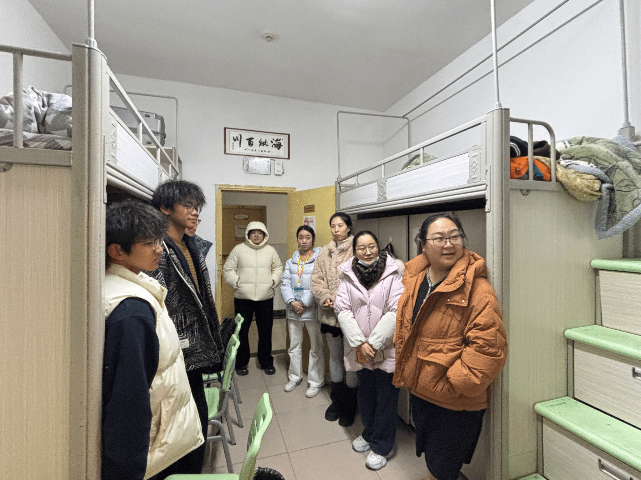 走访过程中,领导老师们每到一间寝室,都与同学们亲切交谈,详细询问大家的住宿环境、饮食起居、学业进度以及课余生活情况。在与同学们的交流中,学院领导认真倾听大家在学习生活中遇到的困难和问题,针对专业学习规划、校园活动参与、未来职业发展等方面为同学们提供了切实可行的建议。同时,叮嘱同学们要合理安排作息时间,养成良好的生活习惯,在努力学习的同时,也要加强体育锻炼,保持身心健康。