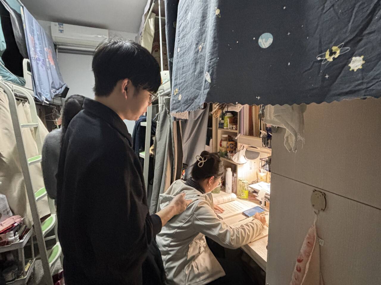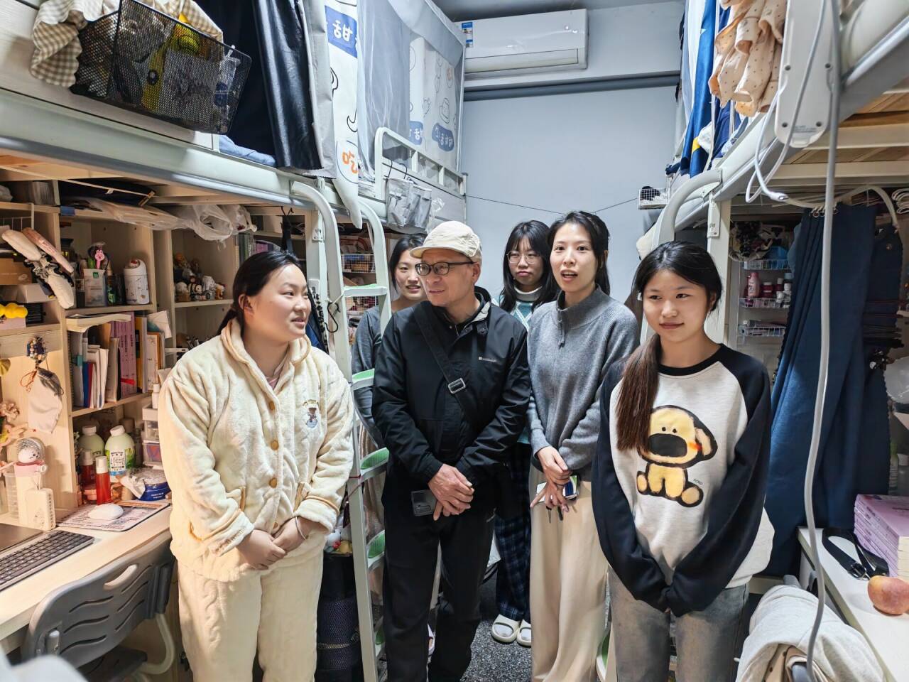 走访期间,刘承栋书记与素质导师们逐一查看宿舍环境卫生、物品摆放及安全设施情况,重点排查用电安全隐患,叮嘱同学们严格遵守宿舍管理规定,自觉维护整洁有序的住宿环境。结合季节交替特点,领导与老师们细致关切学生身体健康,提醒大家及时添衣保暖、勤开窗通风,做好日常健康防护。在轻松融洽的氛围中,院领导与素质导师们和同学们围坐交流,细致询问课程学习进度、生活适应情况及未来职业规划,认真倾听学生对校园建设、学院管理、学习生活等方面的意见建议,对同学们提出的困惑逐一耐心解答、悉心指导。素质导师们还结合自身求学经历,分享寝室生活趣事与成长心得,进一步拉近师生距离,现场暖意融融、笑语不断。同学们纷纷表示,学院领导与老师的亲切关怀,让大家真切地感受到学院大家庭的温暖与归属感。