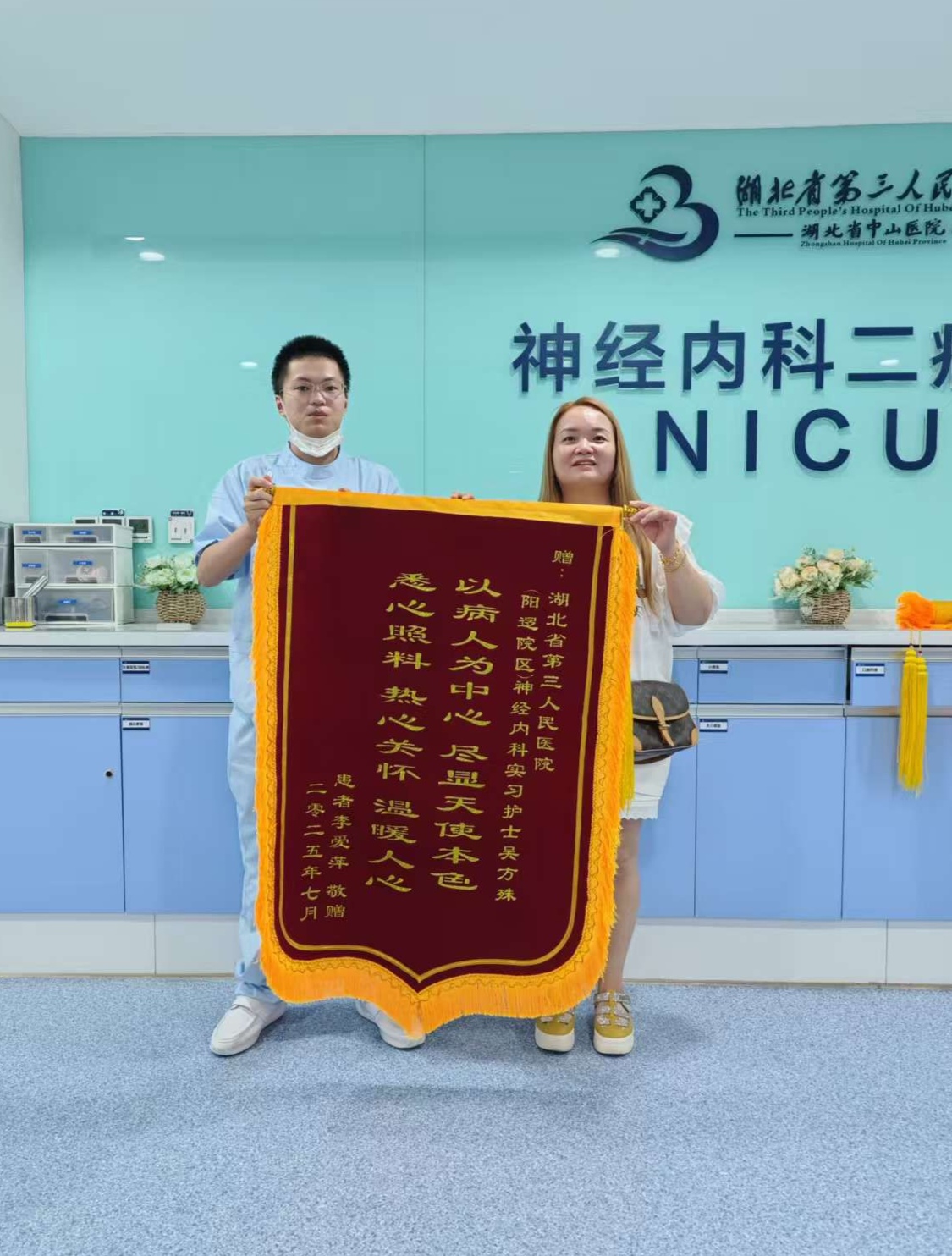 护理学2307班吴方殊在湖北省第三人民医院实习期间获锦旗