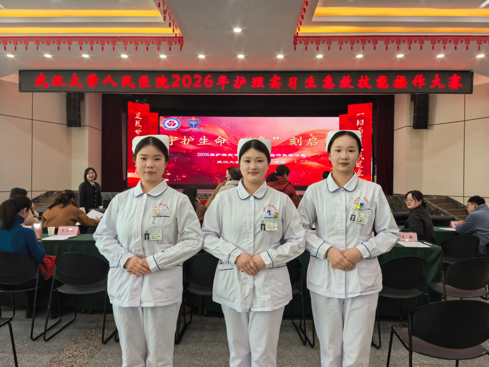 2026年1月23日,武汉大学人民医院护理实习生急救技能操作竞赛圆满结束,武昌理工学院健康与护理学院护理学2204班实习生王静茹、杨龙仙、袁玉珊斩获二等奖。