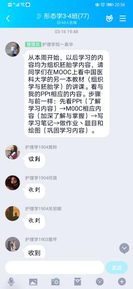 护理学院的全体教师,在这次线上教学期间,认真思考,充分利用各种平台及教学软件,注重课前-课中-课后三个阶段,课前发布教学资源,课中注重知识精讲和学生互动,课后布置作业并及时答疑。与线下教学相比,没有了面对面的拘谨与胆怯,学生更敢于互动与发言,甚至懂得感恩,每次下课时的一句句“老师辛苦啦”,是对教师辛勤工作最好的评价!